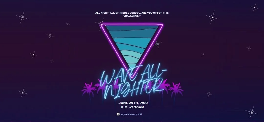 This all-nighter is a time for our middle school students to come together and play games, sing, dance and laugh all night long! Drop-off is at 7:00 pm and pickup starts at 7:30 am on June 30th, 2022! We will have activities running all throughout the night, if your student does not want to stay up all night we will have designated sleep locations for boys and girls, therefore they are welcome to bring a sleeping bag, pillow, etc. We will provide dinner, a snack, and breakfast! Our snack shack will be available if your student would like to purchase snacks throughout the night!
